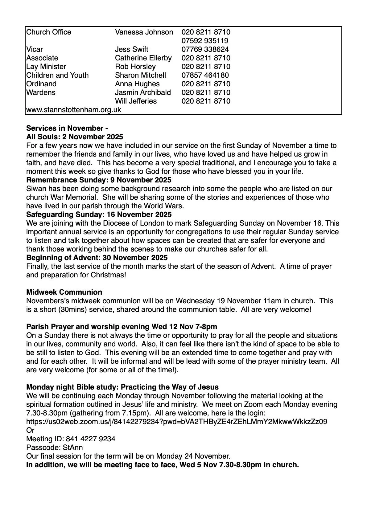 The parish of St Ann’s Tottenham is committed to the safeguarding of children, young people and adults. We follow the House of Bishops guidance and policies and have our own Parish Safeguarding Officer and Children's Champion. The Diocese of London’s safeguarding pages (https://safeguarding.london.anglican.org) contain vital links and information including contacts for the Diocesan Safeguarding Advisor (DSA) who advise our Parish Safeguarding Officer. If you are concerned that a child or adult has been harmed, or may be at risk of harm, please contact the DSA on 020 7932 1224. If you have immediate concerns about the safety of someone, please contact the police and your local authority Children or Adults Services. If you would like to contact St Ann's about a safeguarding matter, please email: safeguarding@stannstottenham.org.uk.